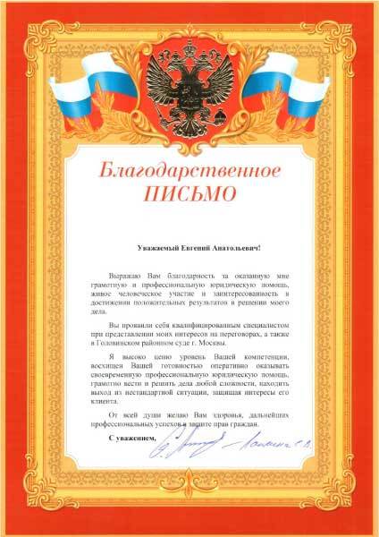 Для начала Рыжов Е.А. собрал всю доказательную базу в обосновании требований своего доверителя, ввиду неисполнения застройщиком своих обязательств по строительству дома и передаче квартиры истцу. В суде юристу удалось доказать, что застройщик не исполняет принятые на себя обязательства по договору участия в долевом строительстве надлежащим образом, не передает квартиру истцу, не достраивает дом. Юрист верно определил нормы материального права, на которые ссылался в своем иске, а именно на ст. ст. 4, 6, 9 ФЗ-214 «Об участии в долевом строительстве многоквартирных домов и иных объектов недвижимости», ст. ст. 13, 15 Закона «О защите прав потребителя».