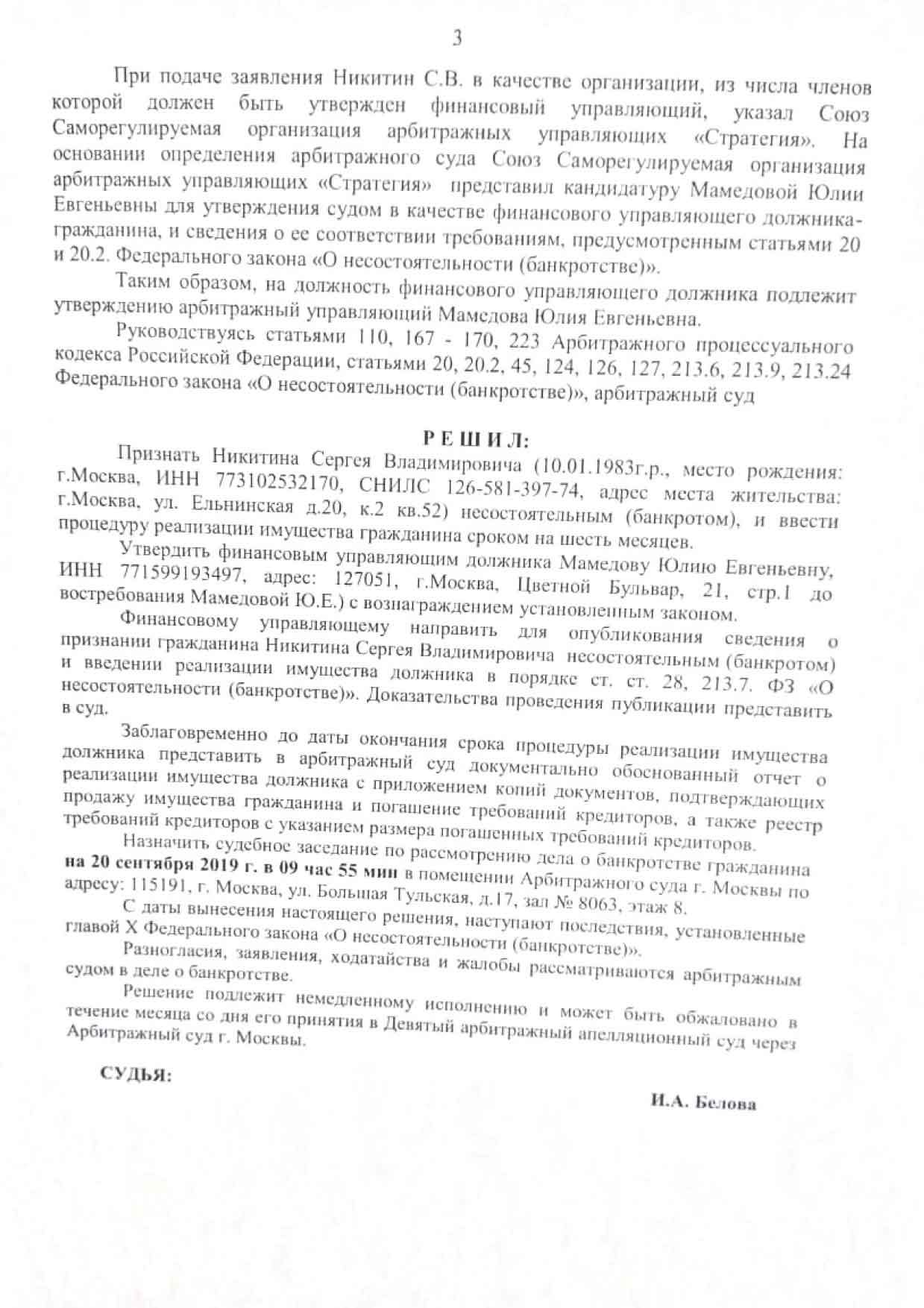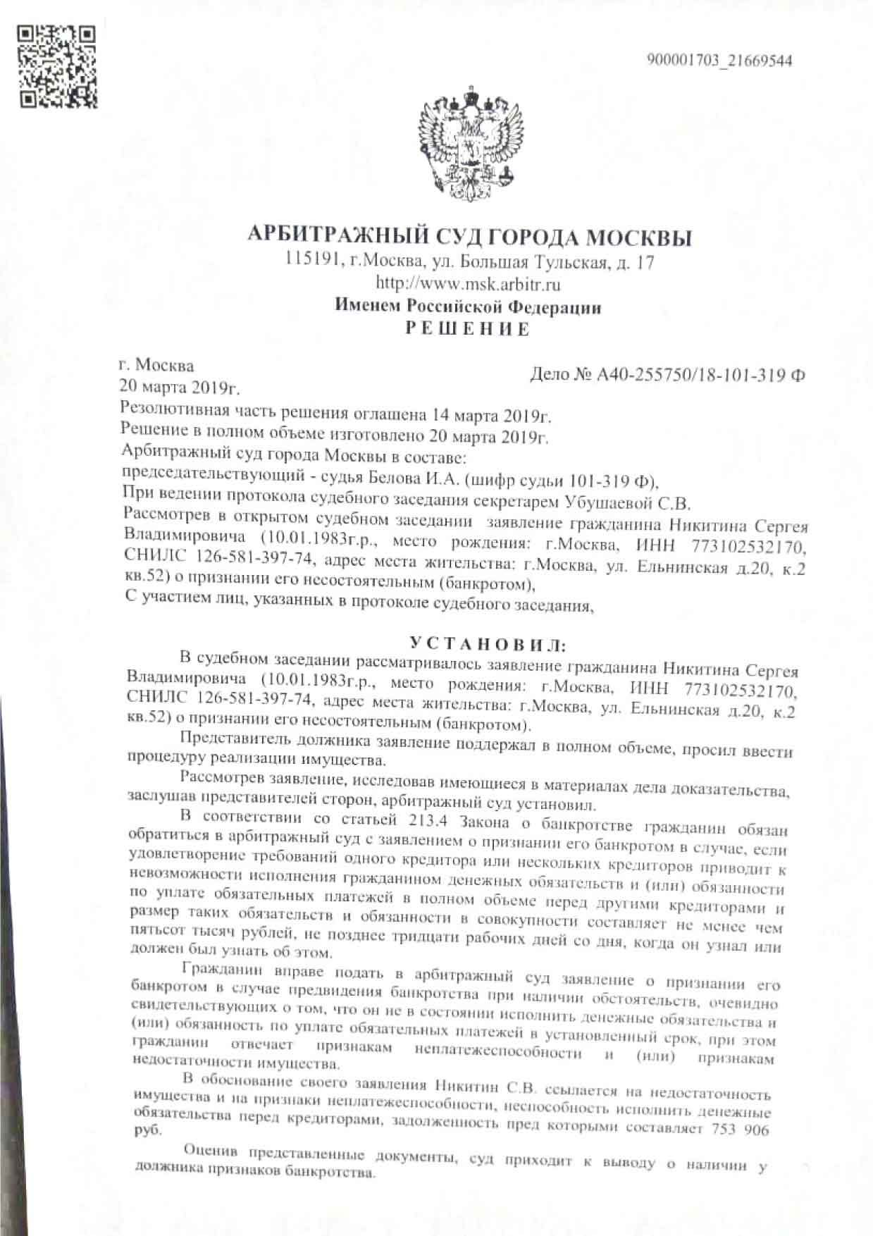 Представитель Рыжов Е.А. подготовил все необходимые документы и в кратчайшие сроки обратился в Арбитражный суд города Москвы с заявлением о признании должника несостоятельным (банкротом).