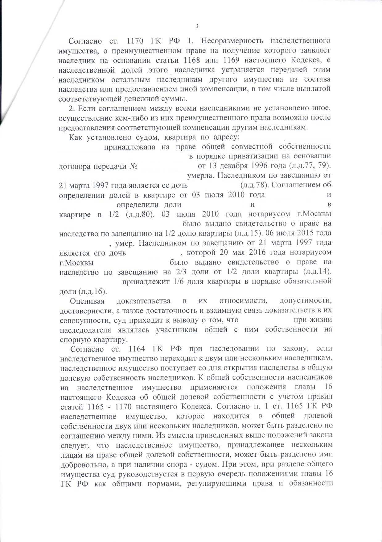 Для начала Рыжов Е.А. собрал доказательную базу в обосновании требований истца, правильно сформулировал исковые требования по делу, исходя из сложившейся судебной практики, решил прекратить право собственности на долю квартиры сестры, признать долю спорной квартиры за истцом и выплатить сестре денежную компенсацию за долю квартиры по рыночной цене. С учетом письменных доказательств, расчета рыночной стоимости доли квартиры, положения денежных средств на депозит суда в качестве серьезности намерений истца, юристу удалось склонить суд на свою сторону. Юрист верно определил нормы материального права, на которые ссылался в своем иске, а именно на ст. ст. 1168-1170 ГК РФ.