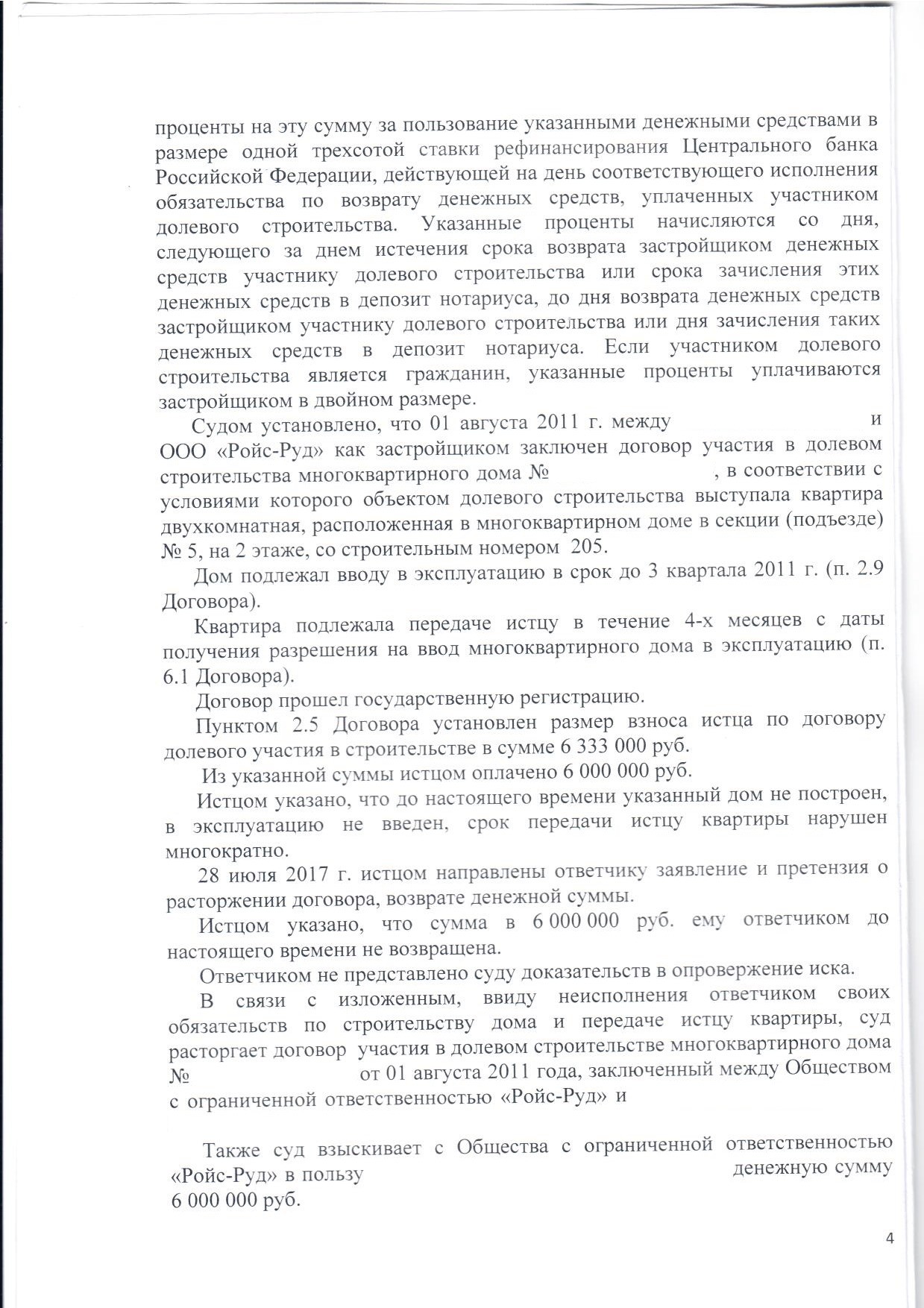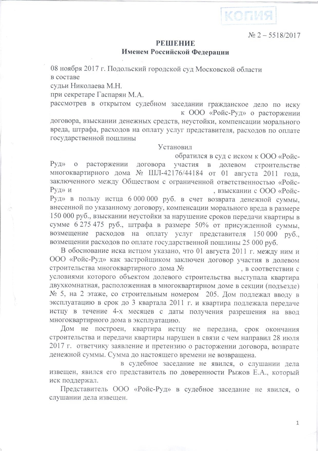 За правовой помощью к юристу Рыжову Е.А. обратился бизнесмен гр. Ш.А.Ш. по вопросу расторжения договора участия в долевом строительстве с застройщиком, взыскании штрафа, морального вреда, судебных расходов.