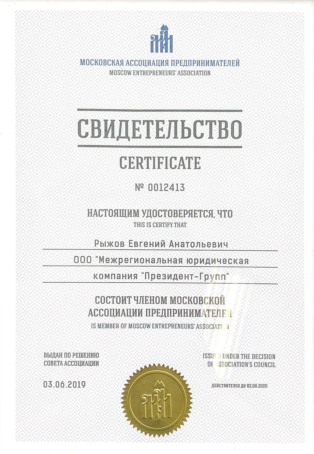 Рыжов Евгений Анатольевич – основатель и генеральный директор юридической компании «ПРЕЗИДЕНТ-ГРУПП». Стаж работы юристом более 15 лет. Свыше 1000 судов с личным участием. Обширная универсальная судебная практика по гражданским делам. Автор ряда брошюр на юридическую тематику. Ведущий авторских юридических вебинаров и семинаров.